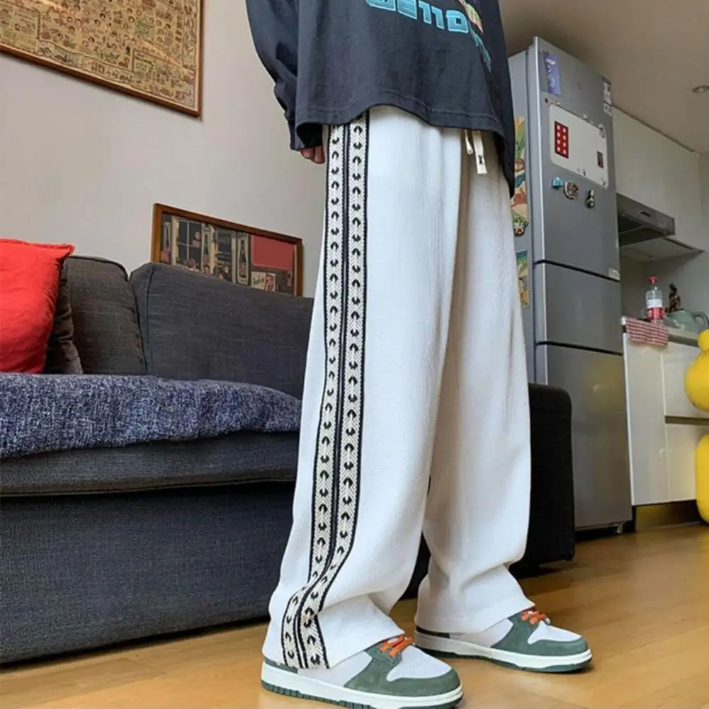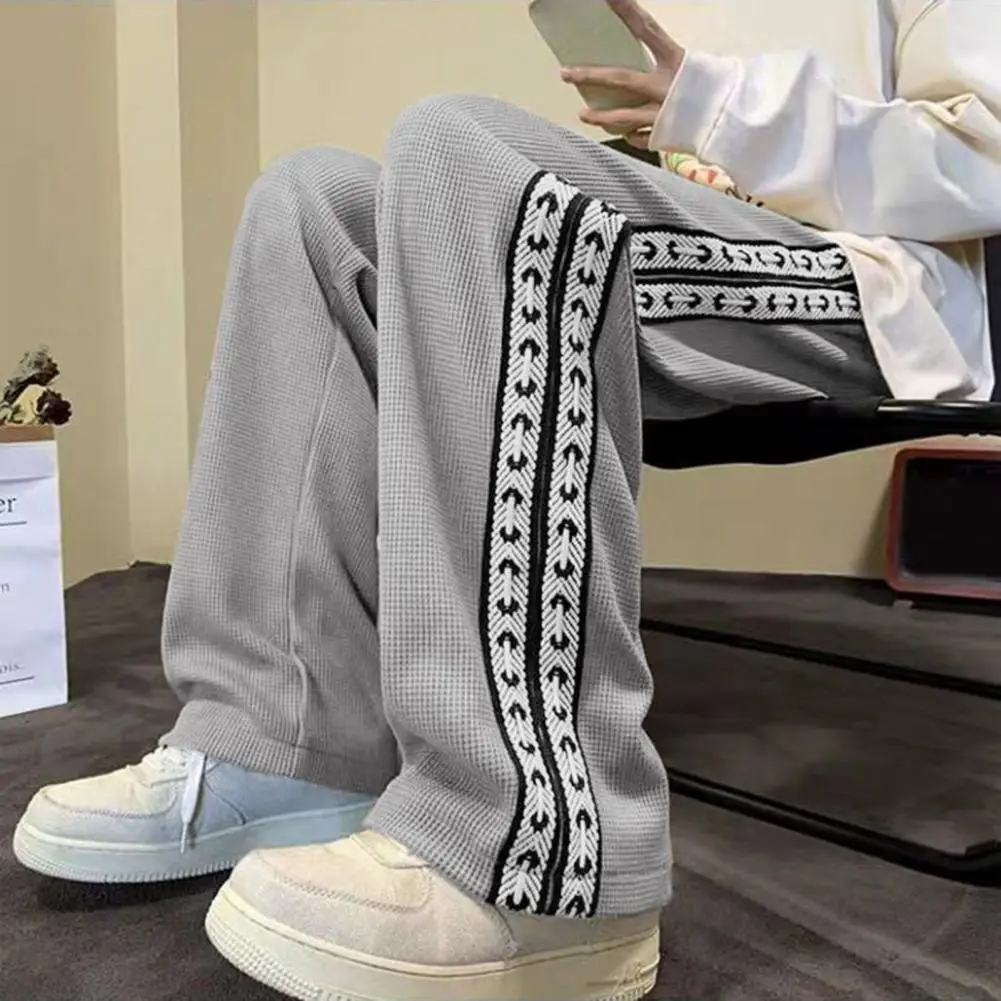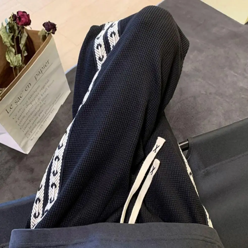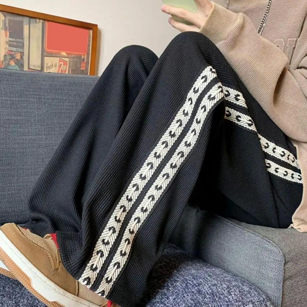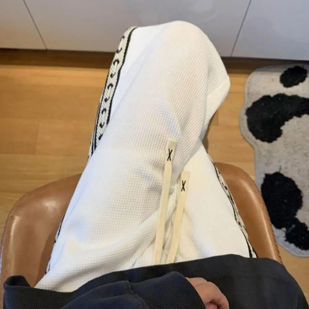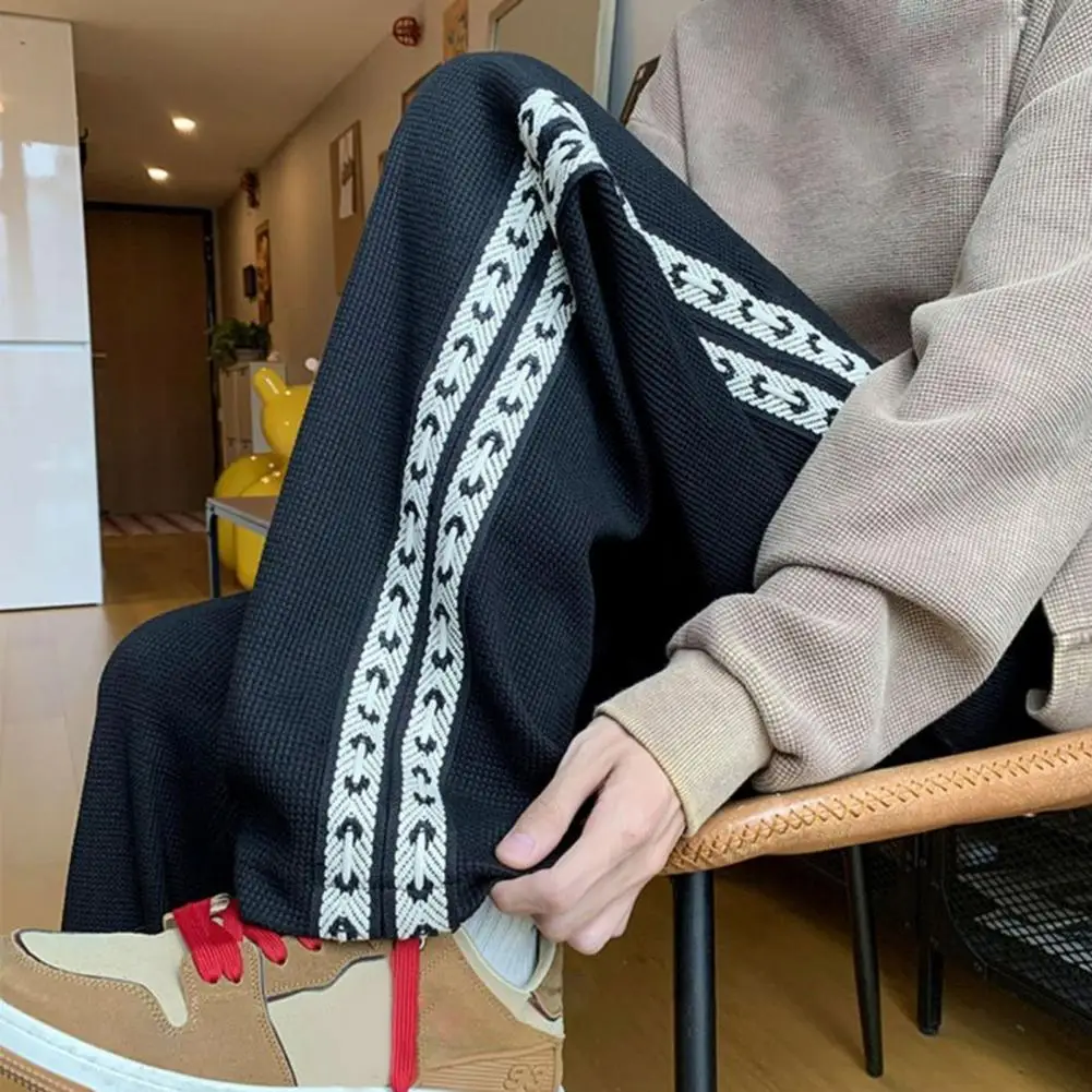 Home Product Men Pants Shrink Resistance Absorb Sweat Drawstring Elastic Waist Waffle Grid High Street Casual Trousers Sports Clothing
