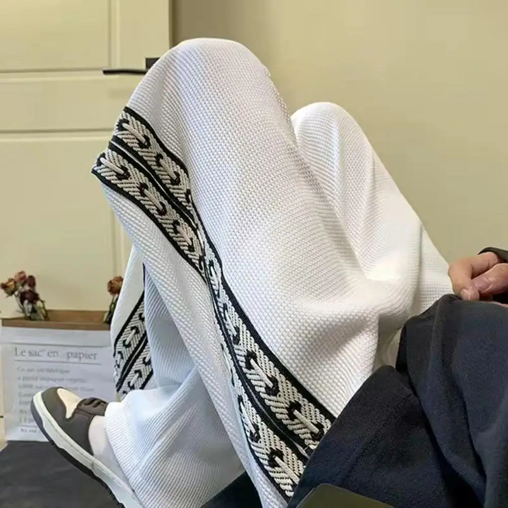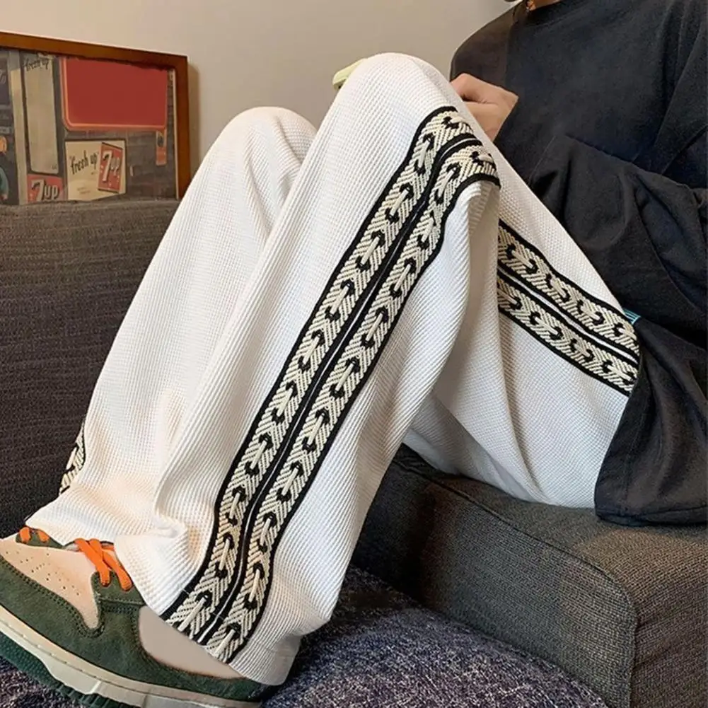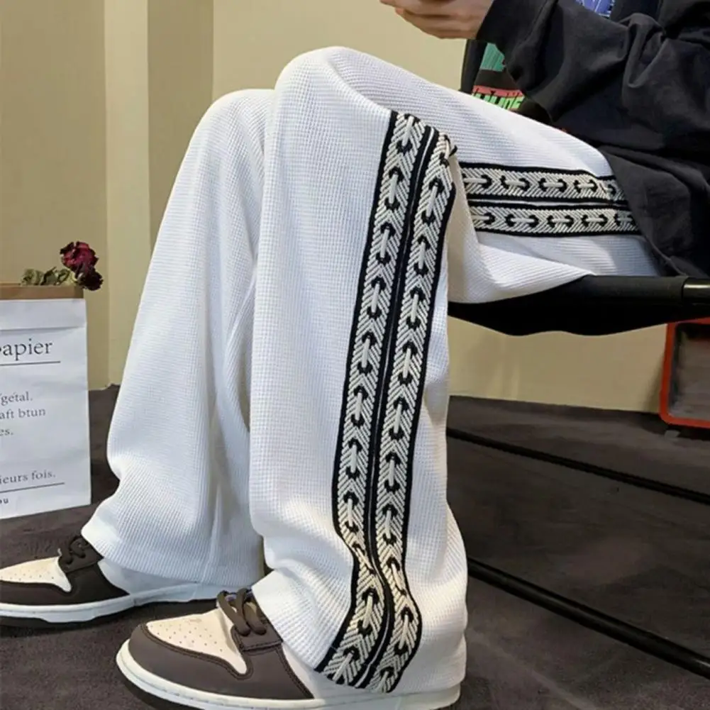 Men Pants Shrink Resistance Absorb Sweat Drawstring Elastic Waist Waffle Grid High Street Casual Trousers Sports Clothing