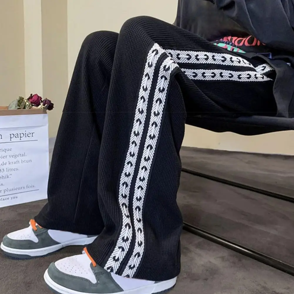 With an all-matched waffle design and side rope pattern, these men pants are suitable for high street style.
